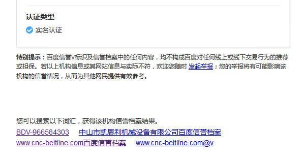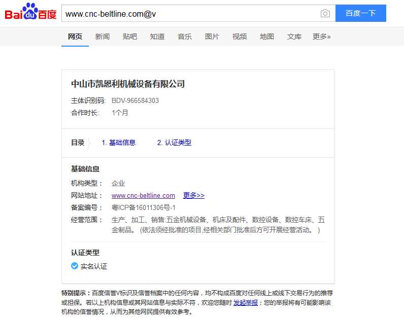 凱恩利機械廠  百度信譽檔案V1  認證成功上線